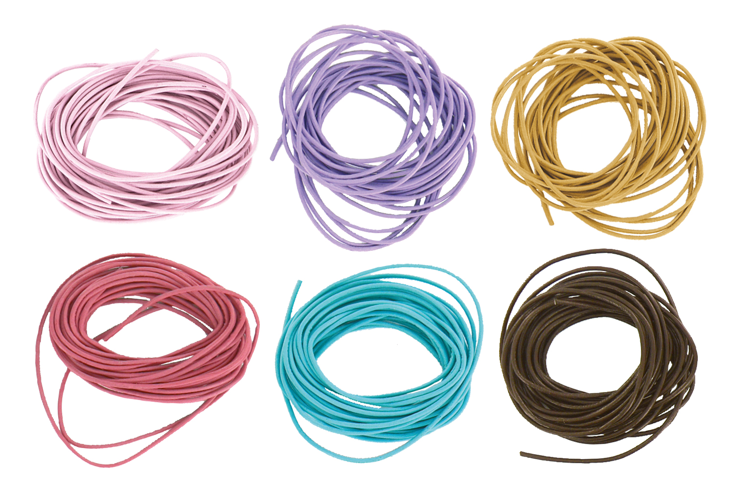 Gran surtido de cordones de cuero coloreados de 1 m de largo. Estos grandes cordones de cuero semi-rígidos sirven tanto para la confección de joyas, como para la decoración de objetos.