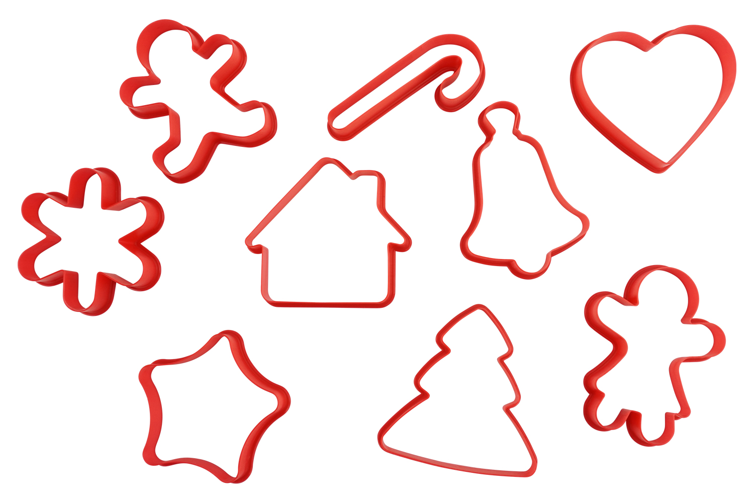 - Lote de 9 formas: hombre de pan de jengibre, árbol de Navidad, campana, copo de nieve, casa, corazón, caramelo, estrella, muñeco de nieve