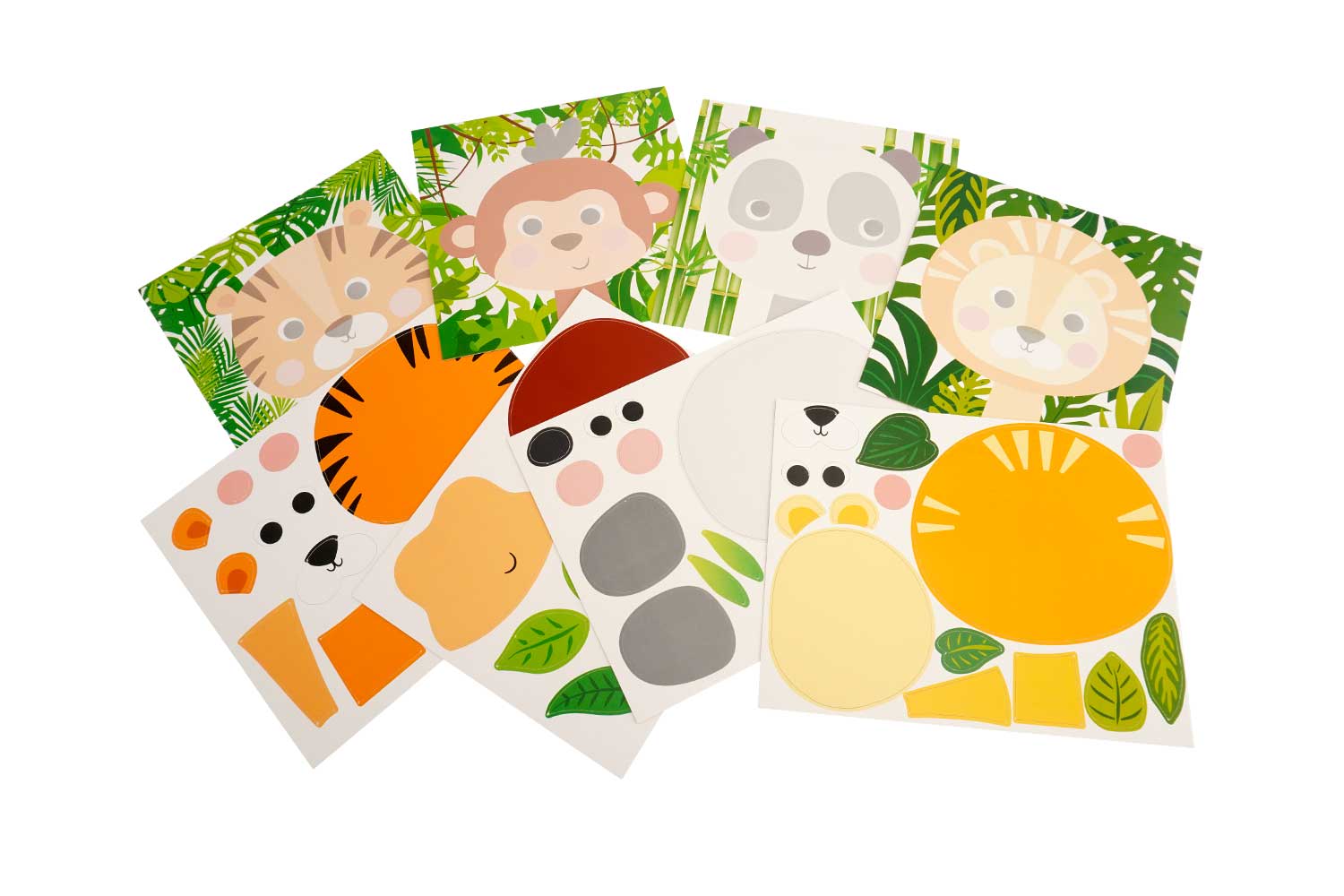 Perfecto para talleres manuales sobre el tema de la selva, el despertar artístico, la motricidad fina y los pasatiempos creativos para niños desde 3 años.
