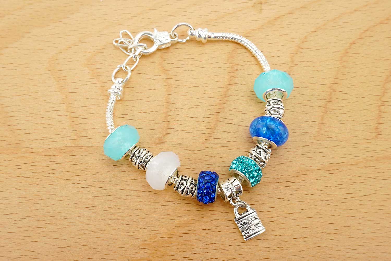 Bonito surtido de 21 cuentas, tipo Pandora, acompañado de 18 charm's en metal. Estas cuentas variadas, que incluyen cuentas facetadas, cuentas cubiertas de strass, cuentas con aspecto jaspeado y cuentas de metal, están especialmente diseñadas con agujeros grandes para crear hermosas pulseras que puedes hacer tú mismo. Puedes combinarlas con nuestra pulsera de metal a juego para creaciones únicas.