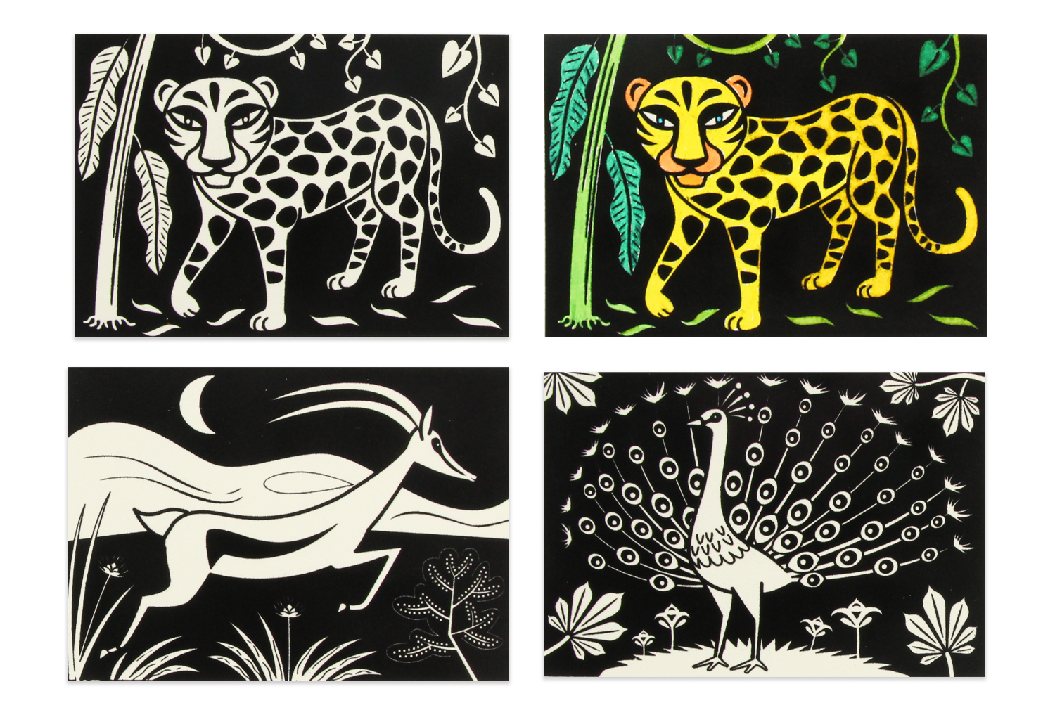 Dibujos para colorear de terciopelo animales - 8 tarjetas