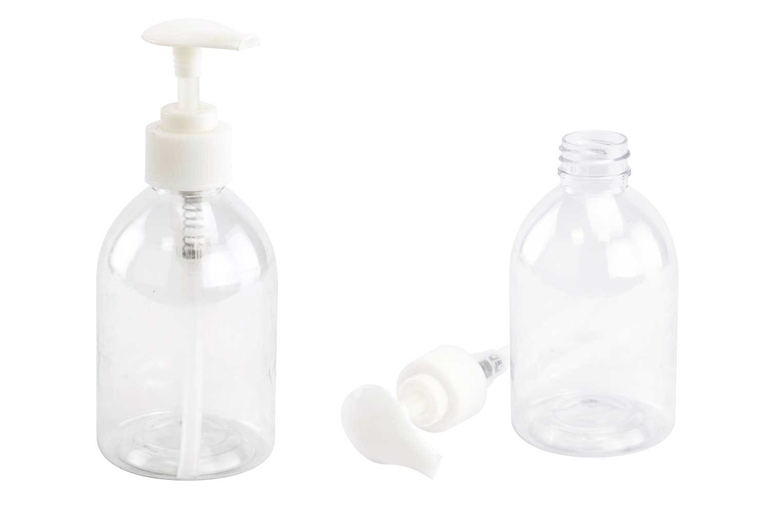 Este dispensador de jabón de plástico transparente es ideal para aportar un toque personal a tu baño o cocina. Equipado con una bomba práctica, se puede rellenar fácilmente con el jabón líquido de tu elección (no incluido).