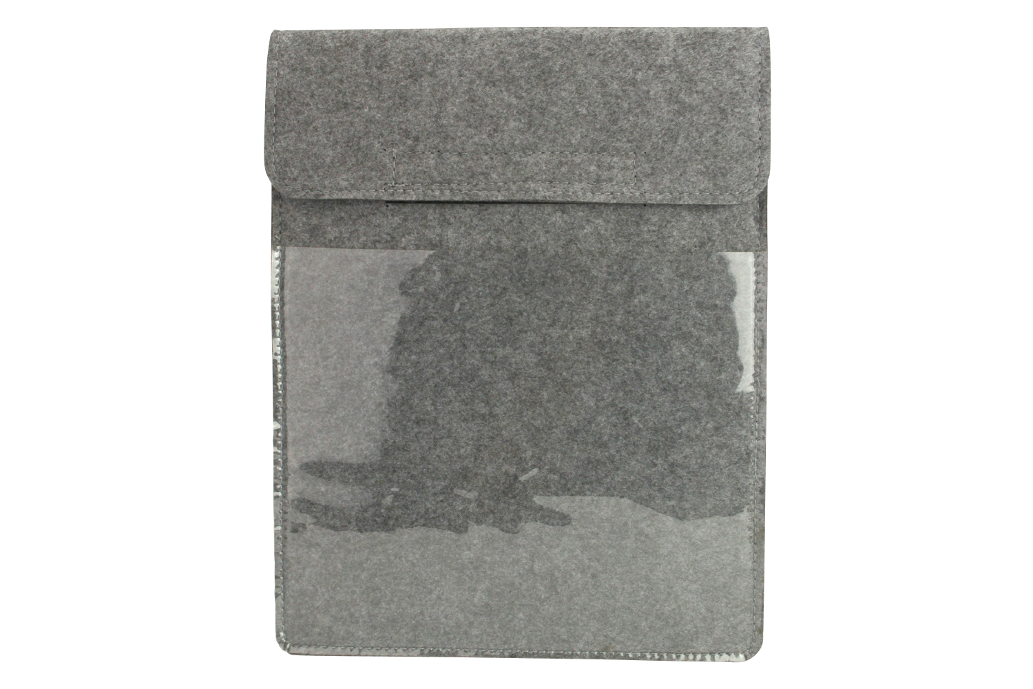 Estuche de protección para tableta en fieltro grueso gris, ideal para amortiguar los golpes en caso de caída ! Dispone de un cierre con velcro así como de una ventana transparente en pvc blando en el frente para poder insertar un dibujo, una foto…