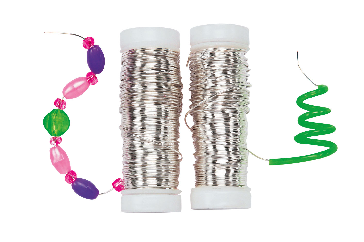 Bobina de fil metálico de color plateado para la confección de joyas, para el arte floral o para tus bricolajes creativos. Fil suave, ideal para enrollar alrededor de otro fil metálico o alrededor de una perla.