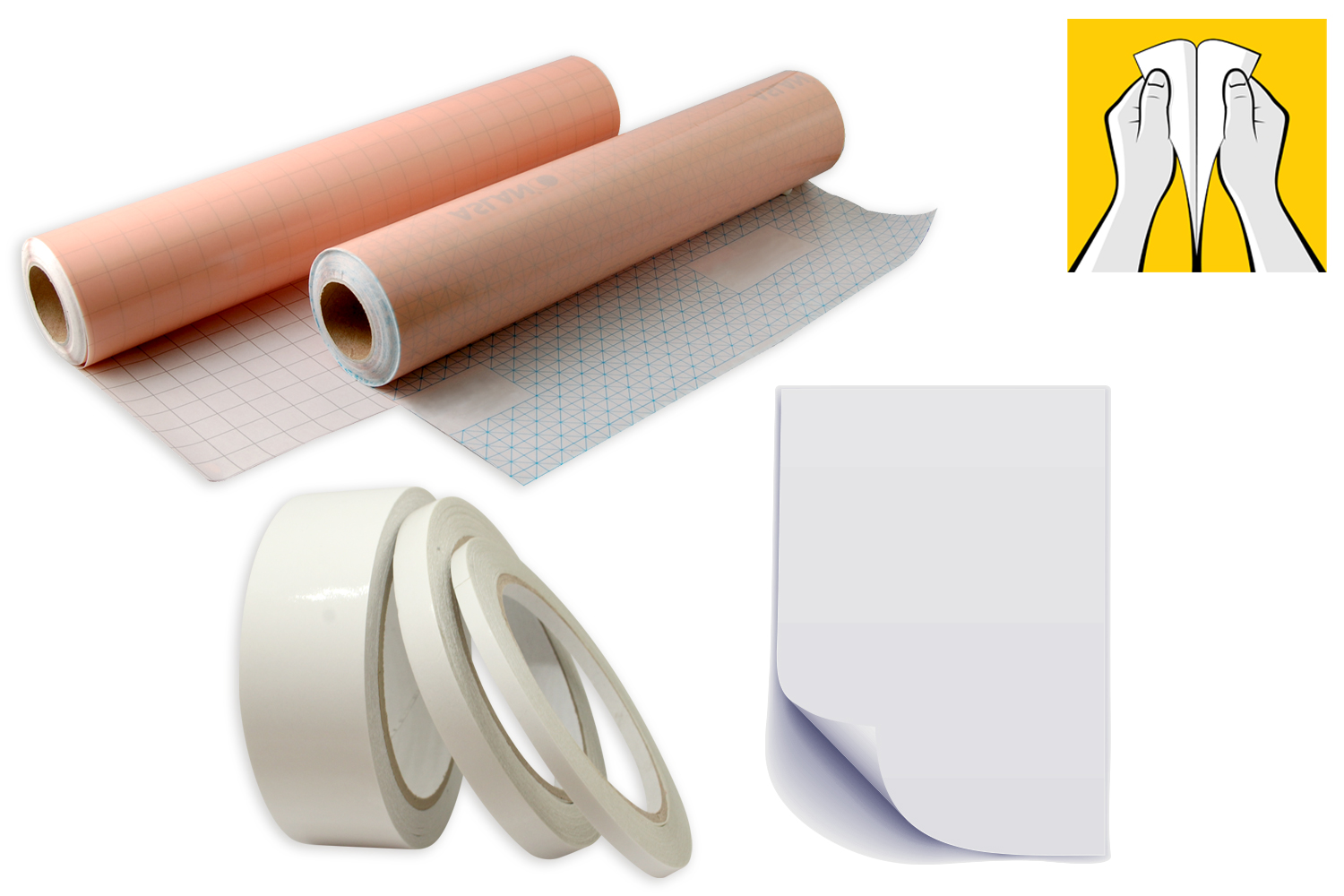 >El film adhesivo de doble cara permite pegar dos superficies entre sí limpiamente, sin marcas de pegamento visibles. Permite realizar pegados “invisibles”, pegar mosaicos sobre vidrio, hacer tarjetas de arena o de purpurina…