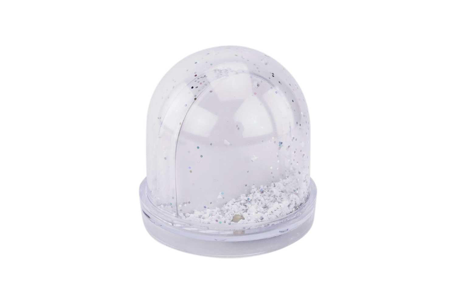 Globo de plástico transparente con nieve y purpurina, para llenar de agua. Práctico, es posible deslizar fotos y dibujos al centro del globo para una decoración fácil y original !