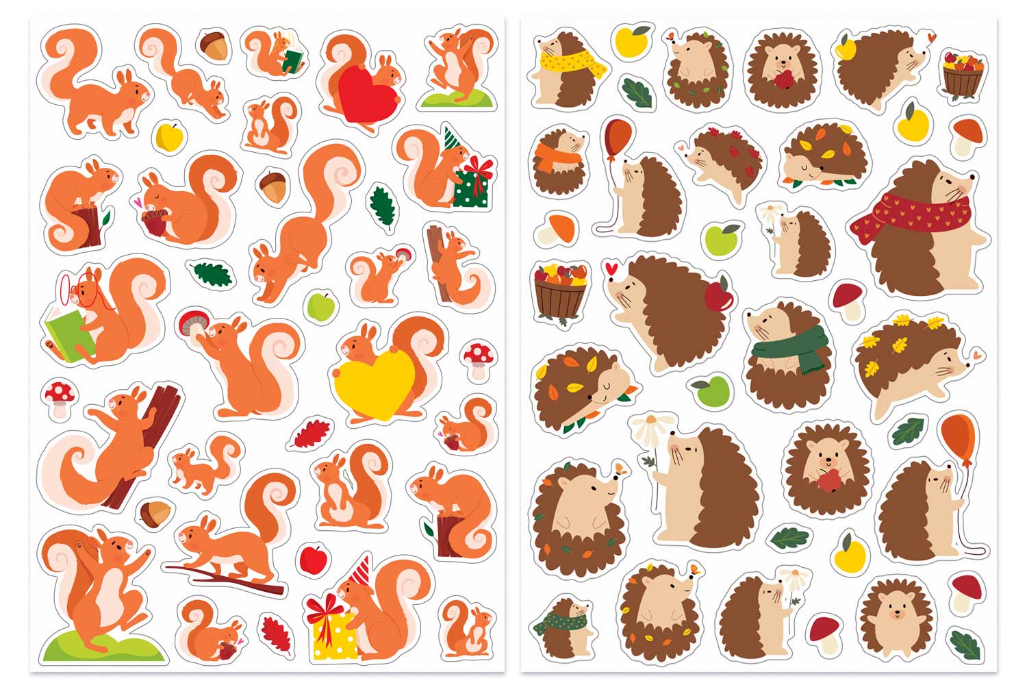 Gomets “Ardillas y erizos”, pegatinas de otoño para actividades creativas.