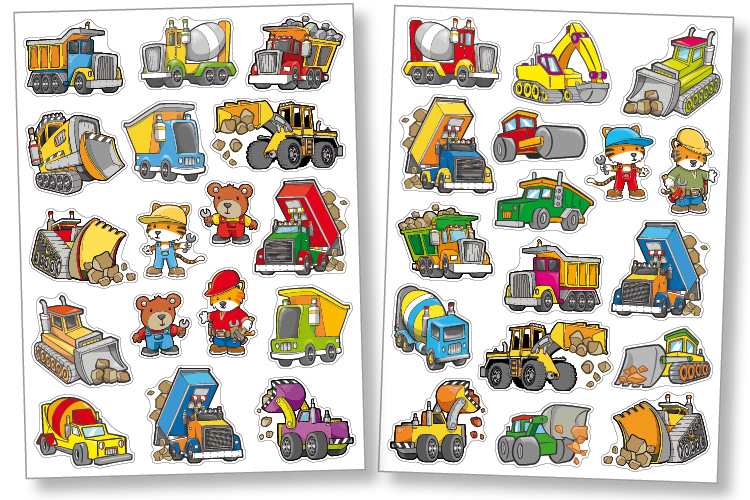 Gomets máquinas de construcción - 2 planchas (34 gomets)