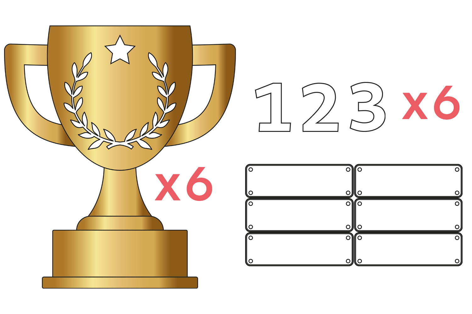 - 6 grandes trofeos de cartón impreso