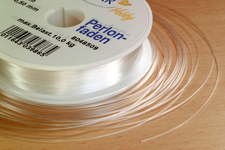 Bobina de hilo de nylon fino para confección de joyas. Este hilo transparente es totalmente invisible en tus creaciones. Se adapta muy bien a las creaciones de joyas con cuentas transparentes, de vidrio o rocailles.