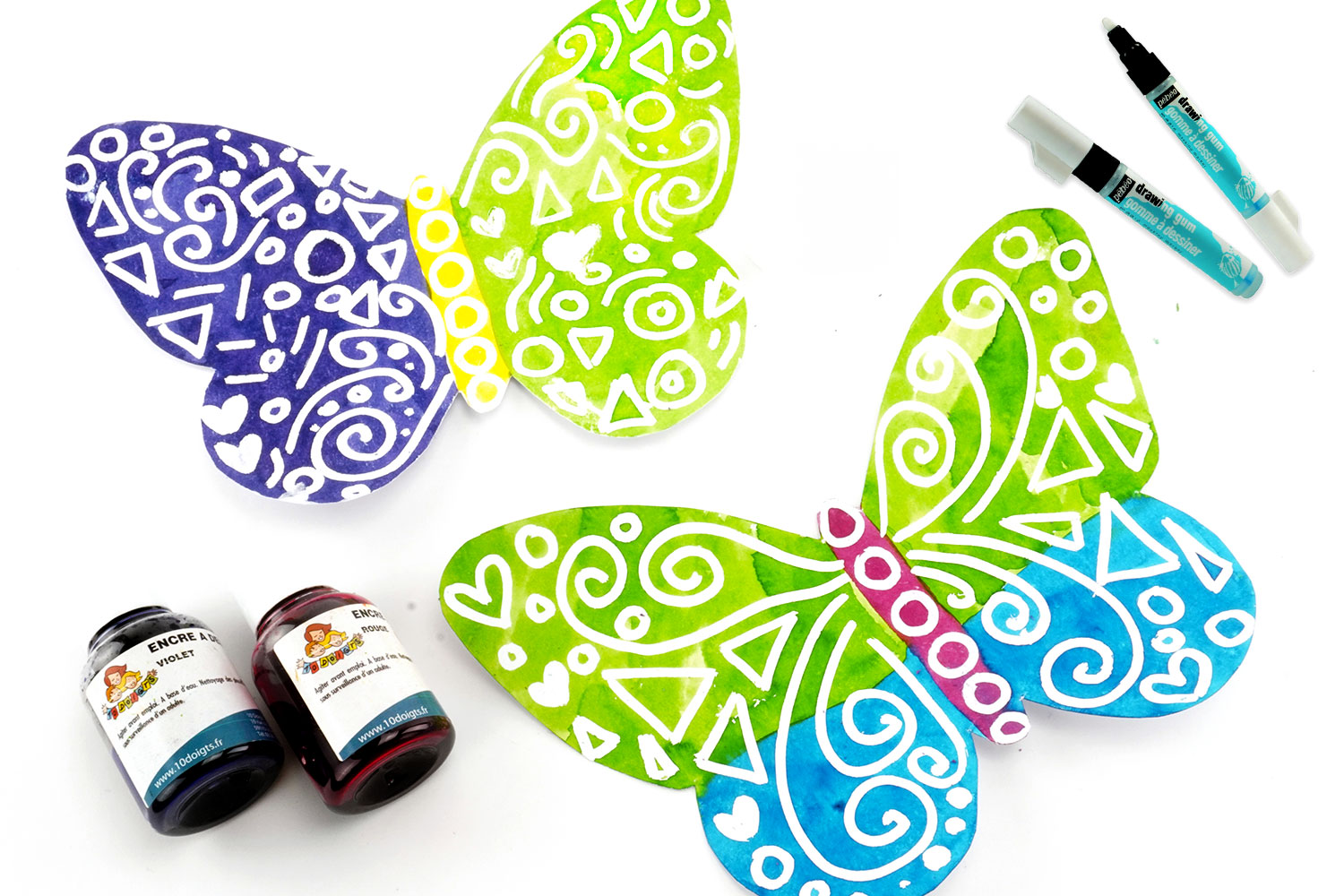 Una vez que el drawing gum esté seco, coloree la mariposa con tinta de dibujar.