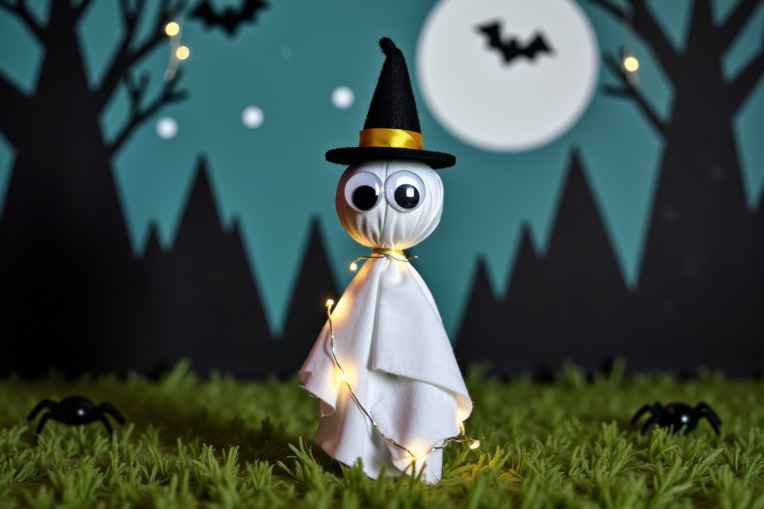 Encienda el interruptor de la guirnalda para iluminar su fantasma hechicero la noche de Halloween.