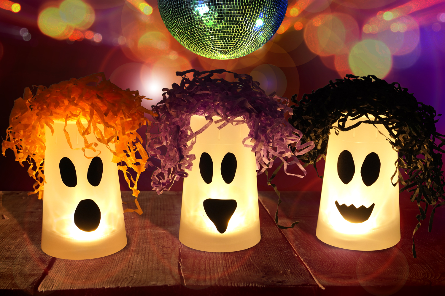 Si deseas transformar tu fantasma en un bonito portavelas, simplemente coloca una vela LED debajo del vaso.