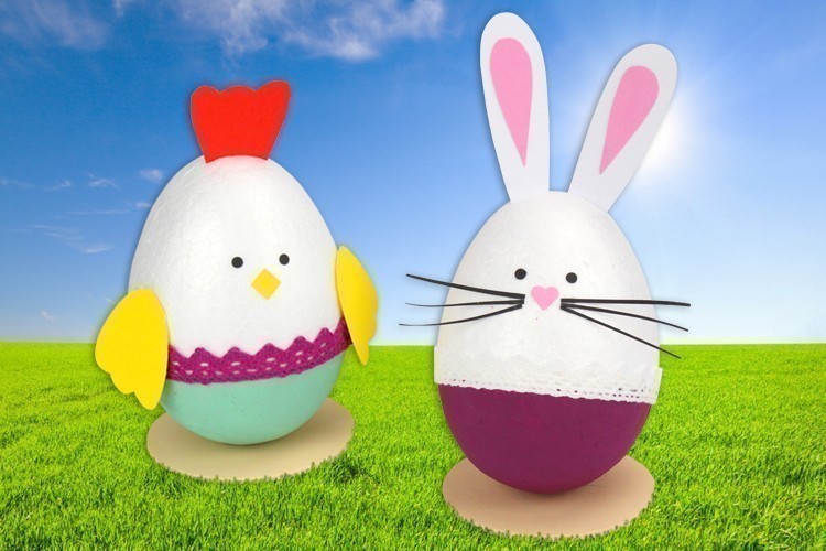Aquí hay una manualidad de Pascua fácil que te permitirá hacer una bonita gallina y un bonito conejo decorativo con un huevo de poliestireno, un poco de pintura, cinta adhesiva y papel !