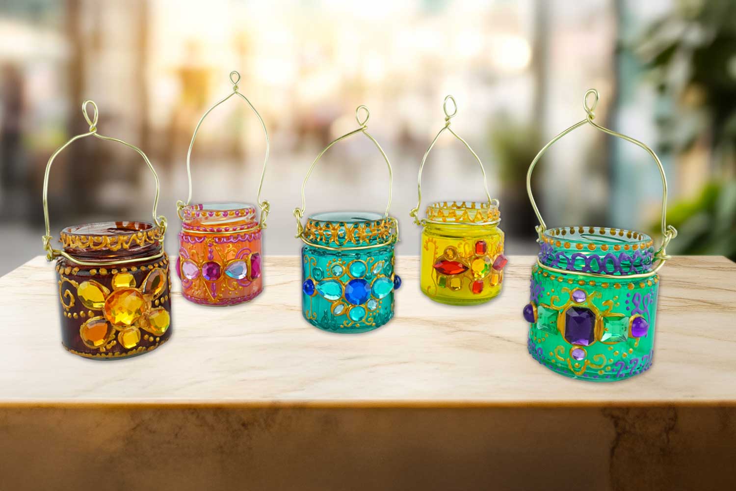 Cree un ambiente mágico con estas preciosas linternas orientales realizadas a partir de frascos de vidrio, de strass centelleantes y de pintura dorada. Este DIY fácil y accesible para niños y adultos permite aportar un toque cálido y colorido a su interior. Perfectas para celebrar fiestas como Navidad, el Ramadán o simplemente para iluminar sus veladas, estas pequeñas linternas transformarán su decoración en un verdadero cuento de Las Mil y Una Noches !