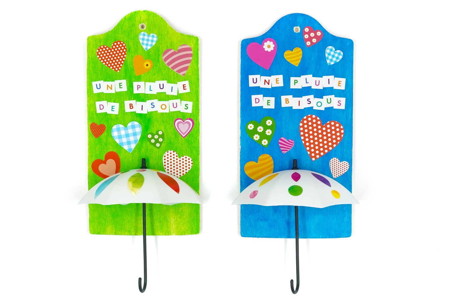 Importante : en lugar de usar las pegatinas que vienen con los paraguas, preferimos pegar todo con la pistola de pegamento para un pegado más resistente, ¡porque los llaveros a veces pueden ser pesados!