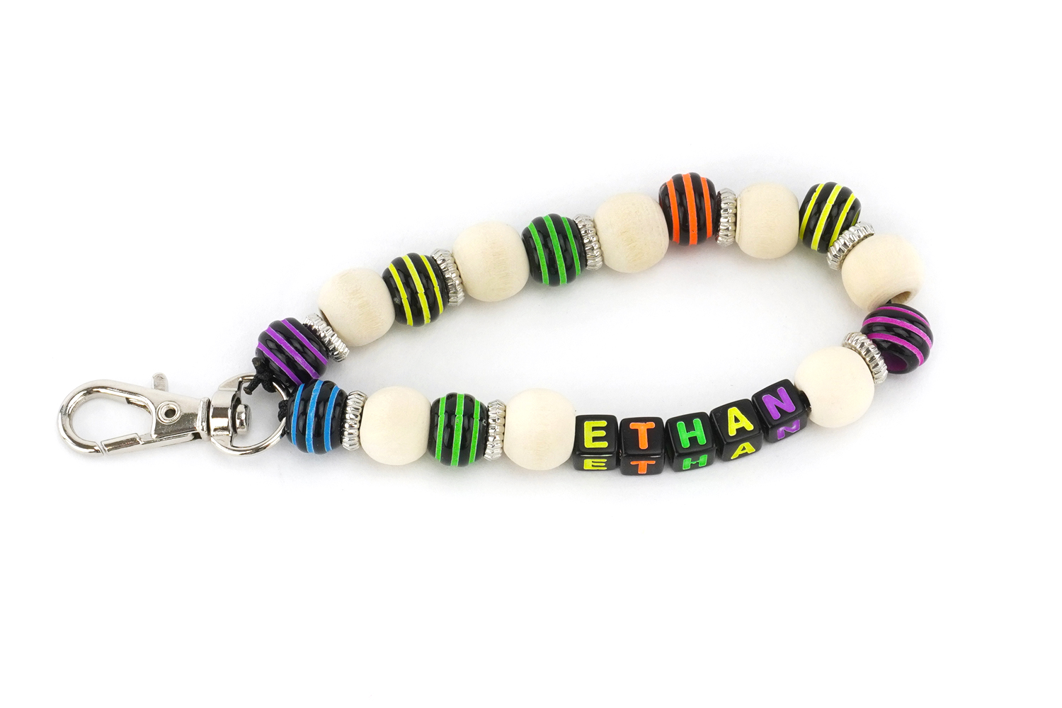 Retrouvez ci-dessous les abalorios et accessoires qui permettront aux enfants de fabriquer un superbe llavero personnalisé avec leur prénom.