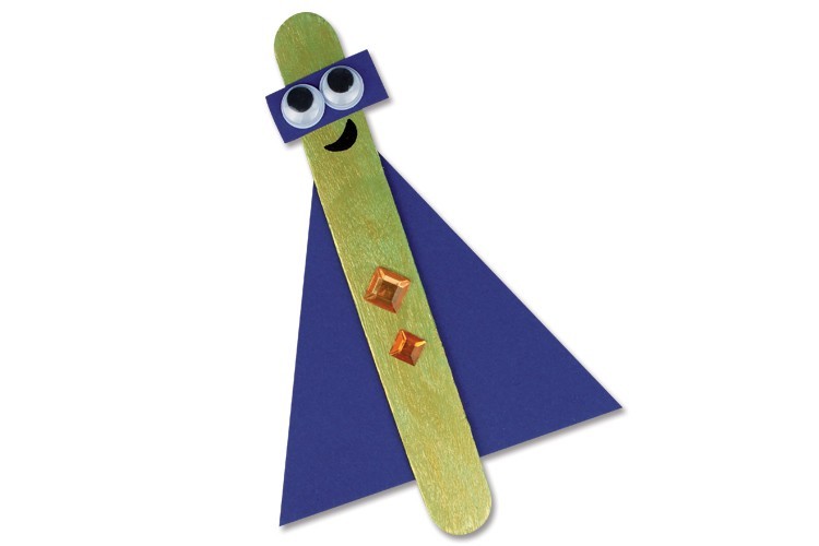 ¡Crea marcapáginas superhéroes utilizando simplemente palitos de helado de madera, un poco de papel y strass !