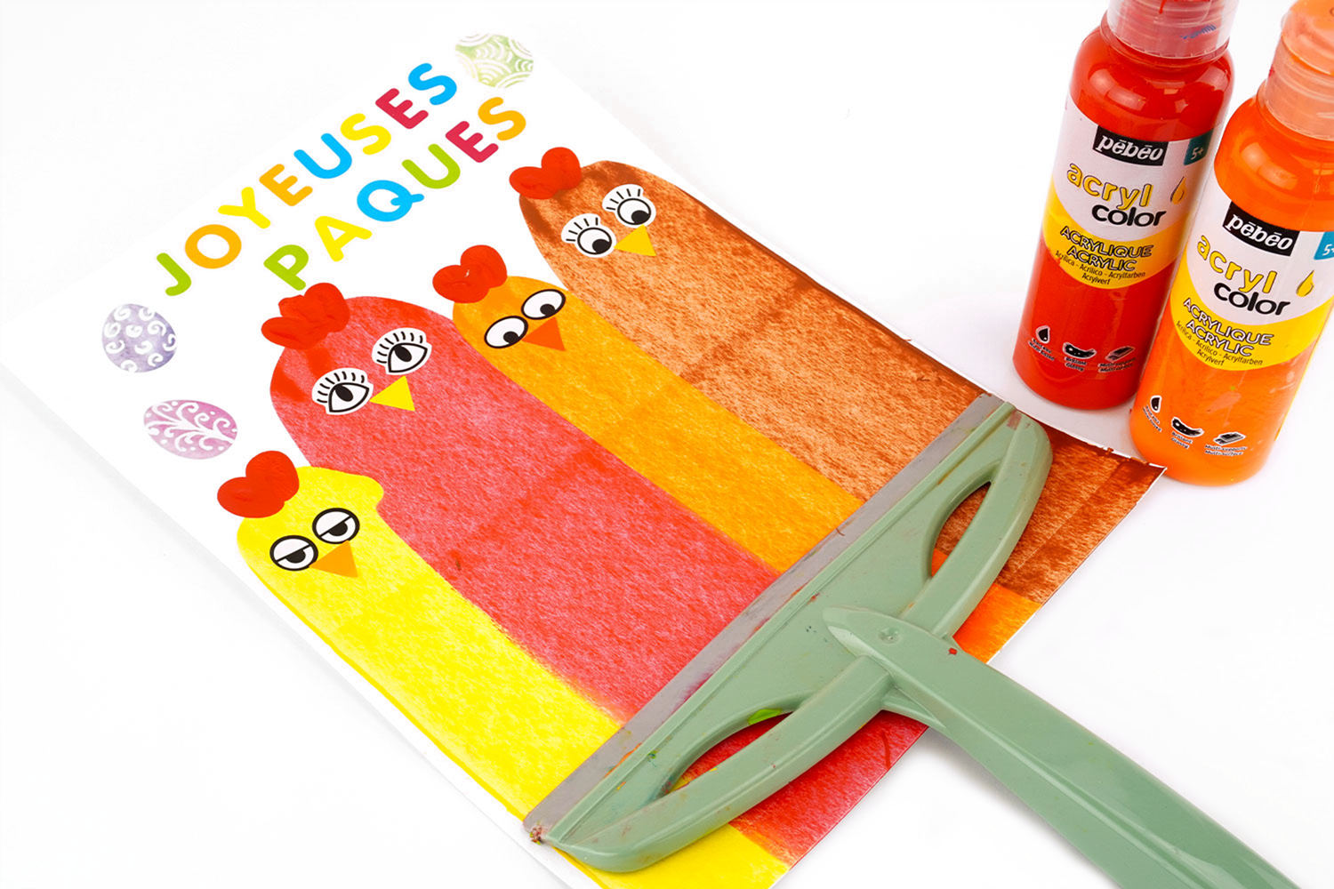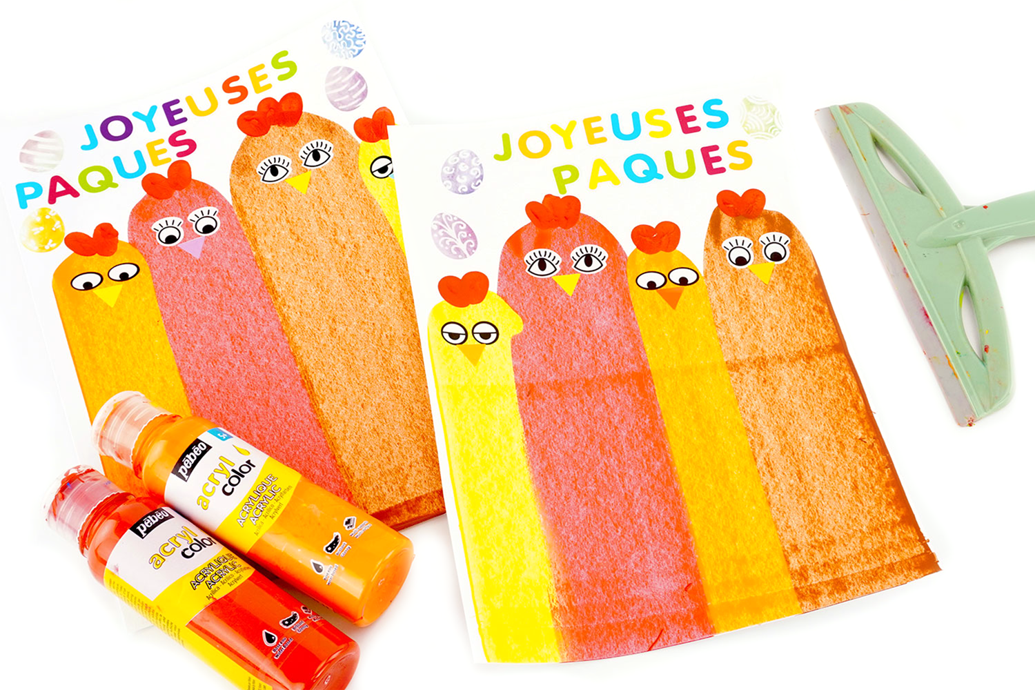 Para crear pollos con la pintura a la raclette, se necesita: