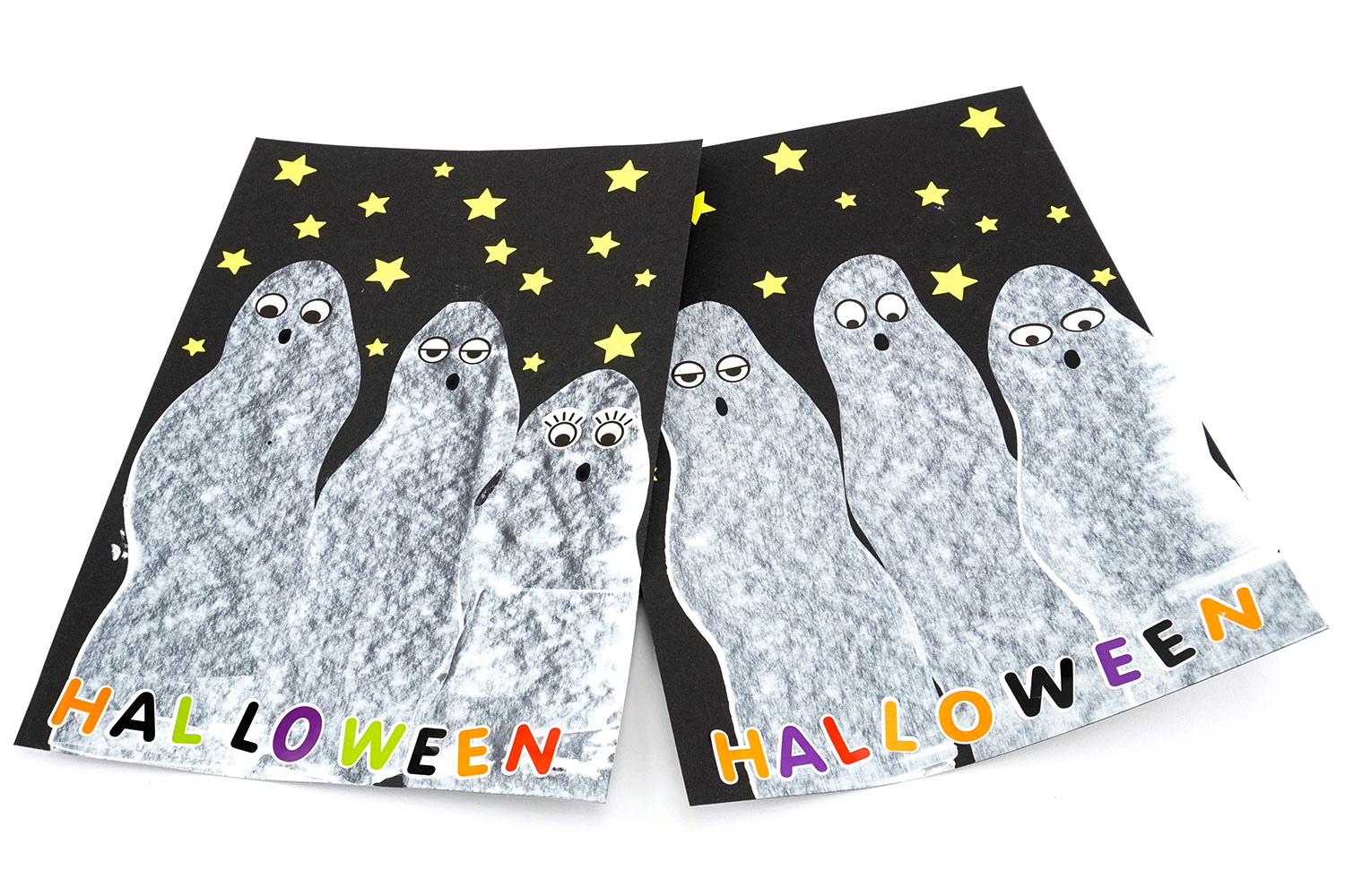 Con pintura, una espátula y algunas gommettes estrellas, los niños podrán crear fantasmas para sus manualidades infantiles de Halloween. Una actividad manual fácil, divertida y colorida que será adecuada para los más pequeños.