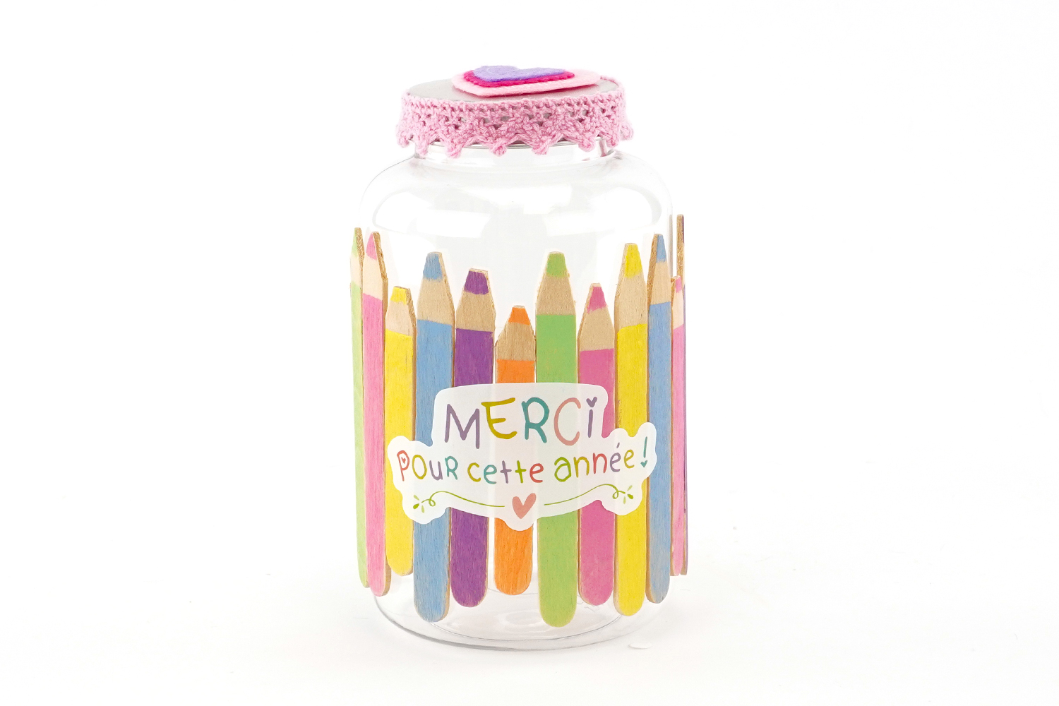 Pega una bonita etiqueta de corazón de fieltro en la tapa.