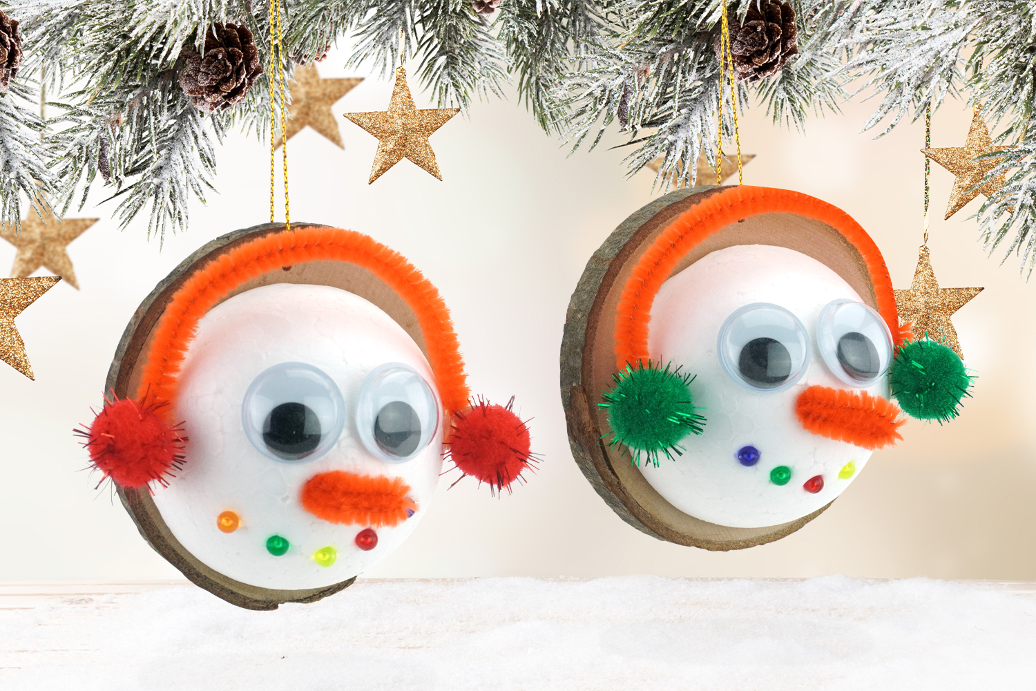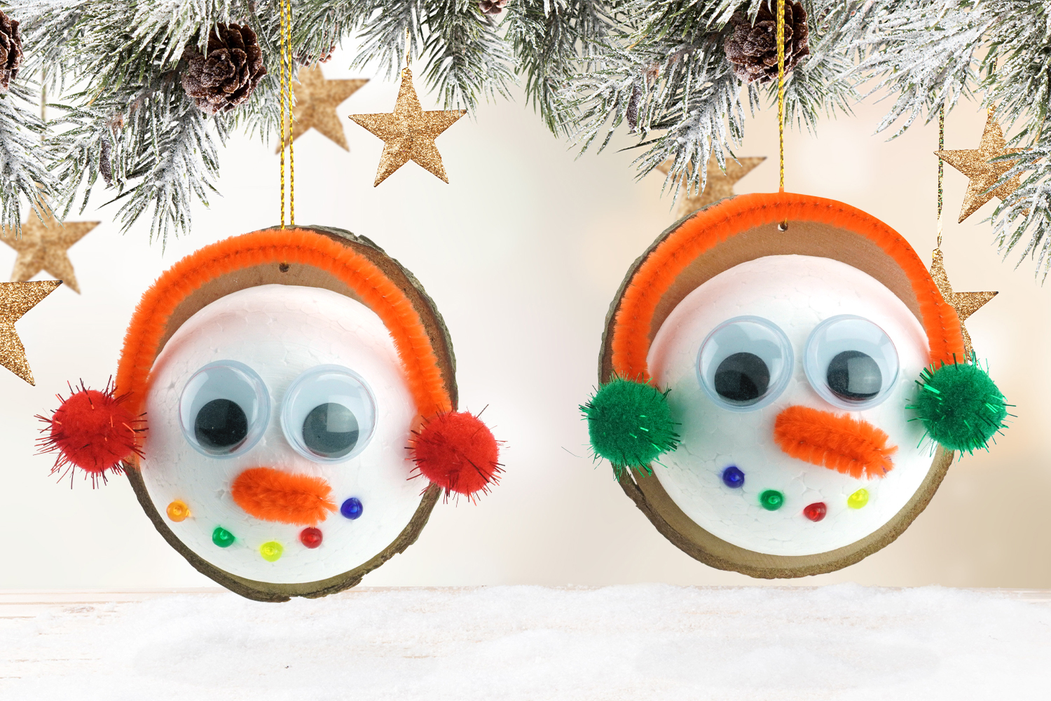 En esta actividad de Navidad, los niños aprenderán a fabricar suspensiones muñecos de nieve adorables con orejeras para colgar en el árbol de Navidad.