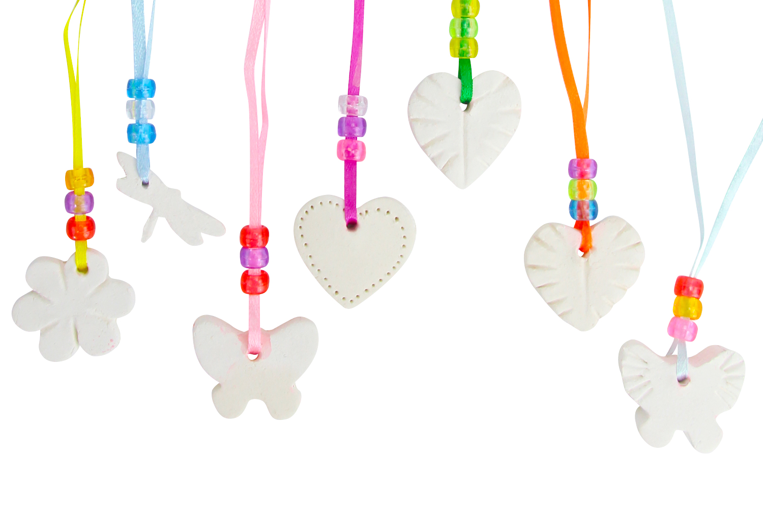 Extiende la pasta, córtala con los cortadores, deja secar y luego añade cinta y perlas para hacer una bonita suspensión. Termina aplicando unas gotas de perfume. Este kit permite realizar al menos 50 formas, para un grosor de aproximadamente 7 mm.