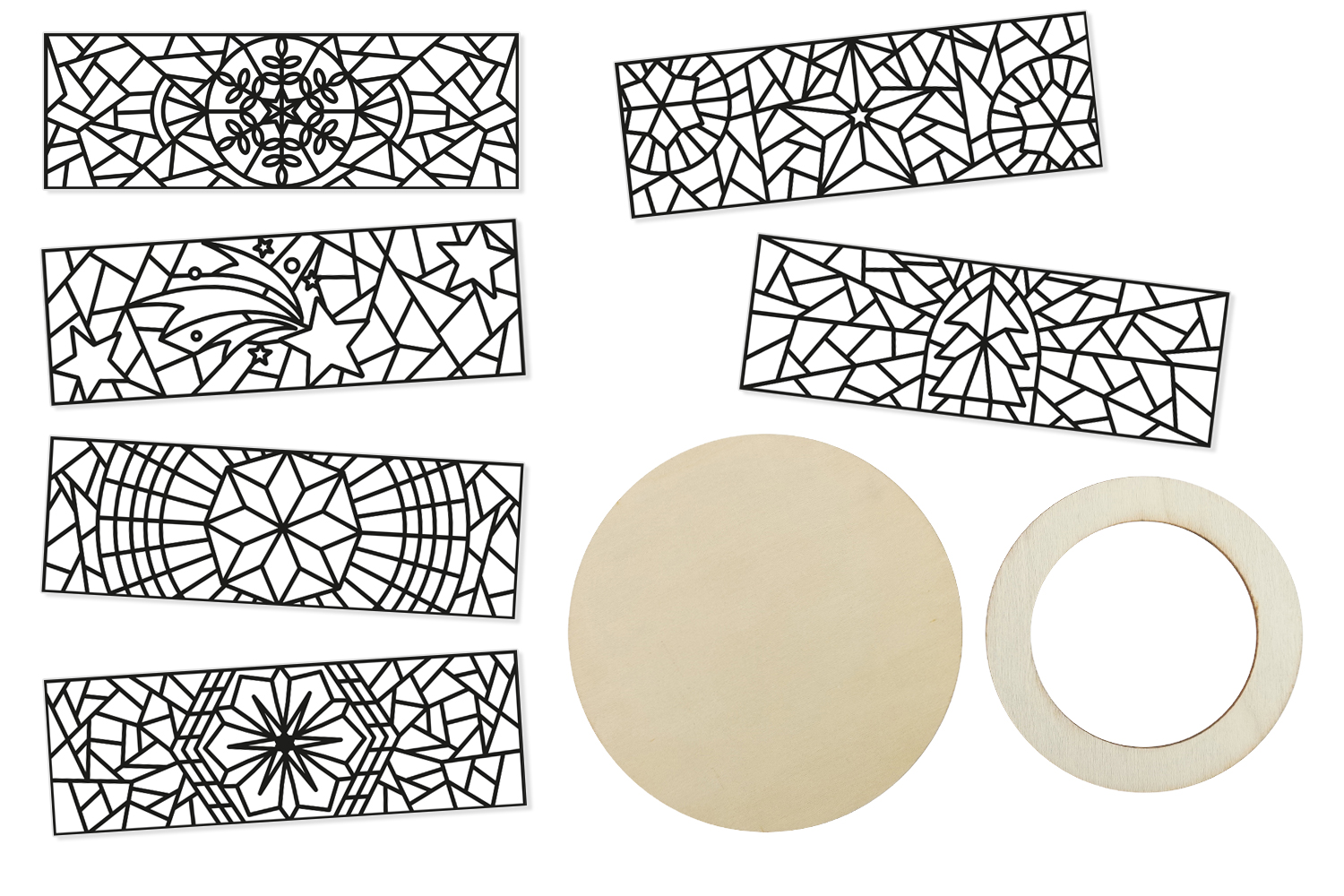 Simplemente colorea los papeles vegetales impresos, adornados con hermosos patrones de efecto vitral, para crear espléndidas decoraciones luminosas. Estos portavelas aportarán un toque de ensueño a tu interior durante la temporada navideña.