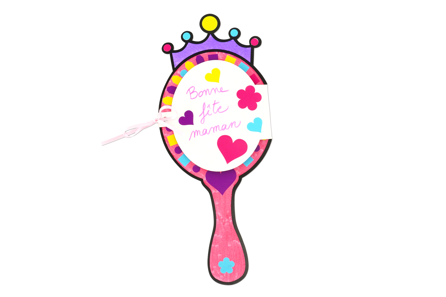 Personalización fácil: los niños pueden decorar su tarjeta con lápices, rotuladores y las gommettes proporcionadas en el kit. Un regalo único: una vez decoradas, estas tarjetas espejo serán un regalo adorable y lleno de amor, perfecto para el Día de las Madres o una ocasión especial.