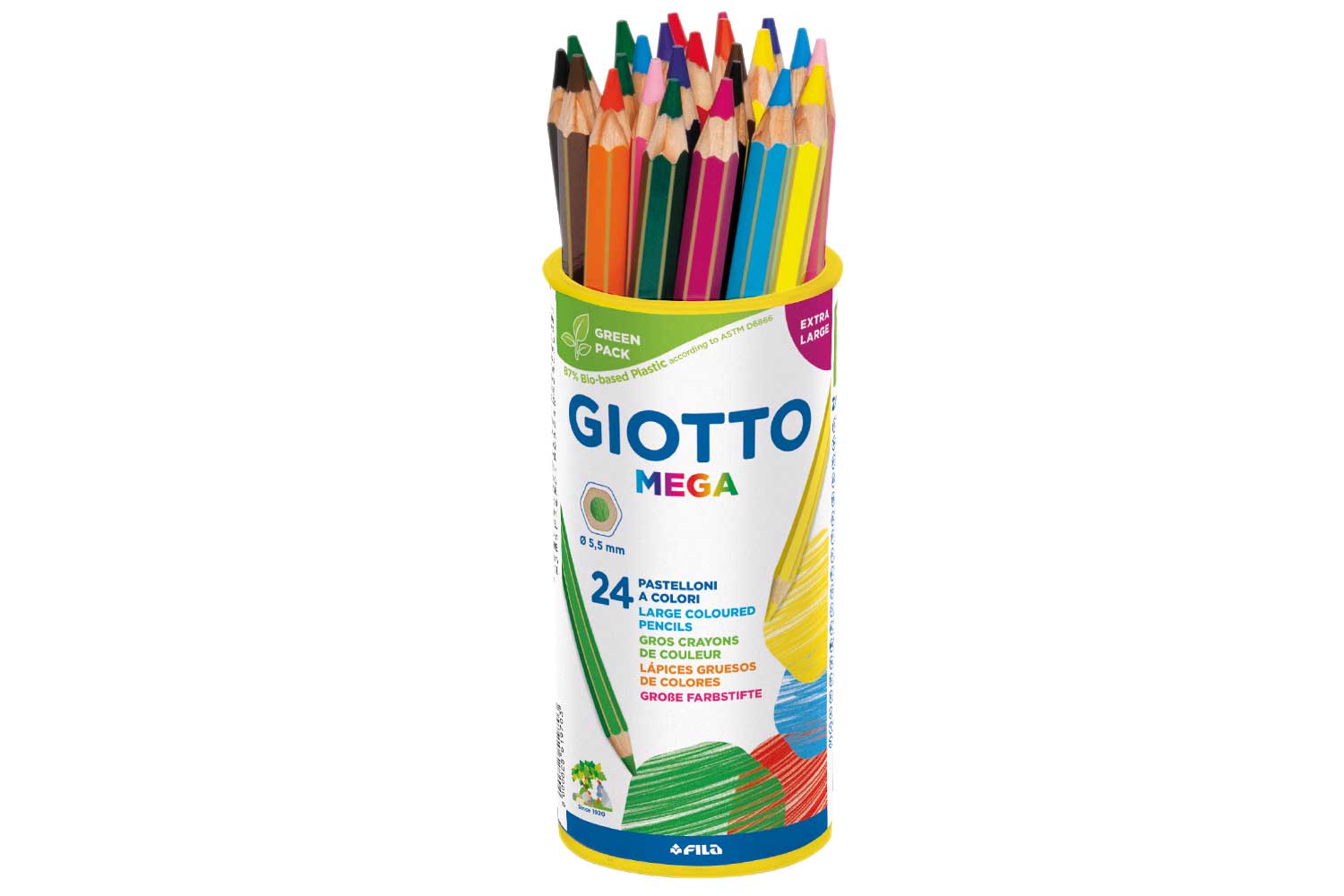 - Frasco de 24 lápices de colores GIOTTO Méga (12 colores x 2 lápices)