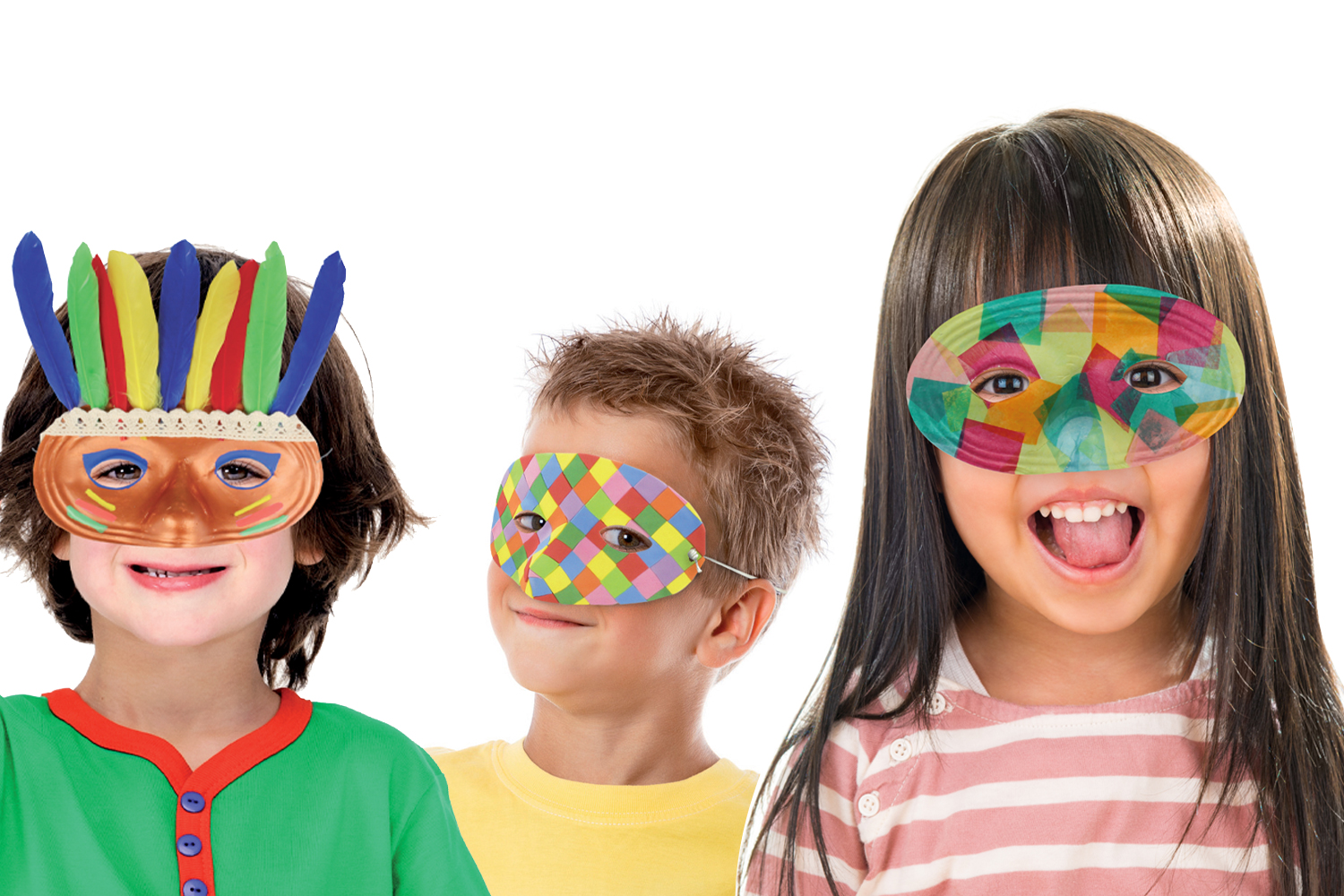 Máscaras de plástico blanco de calidad superior, entregadas con gomas.