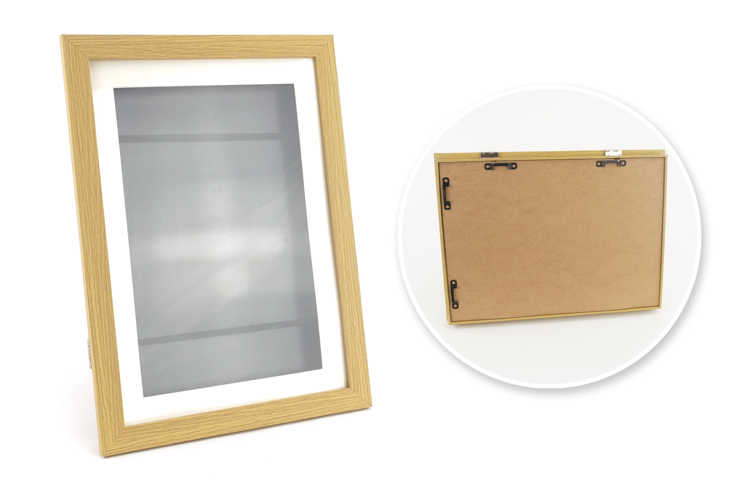 - 4 ganchos de marco fijados en la parte posterior para una exhibición horizontal o vertical