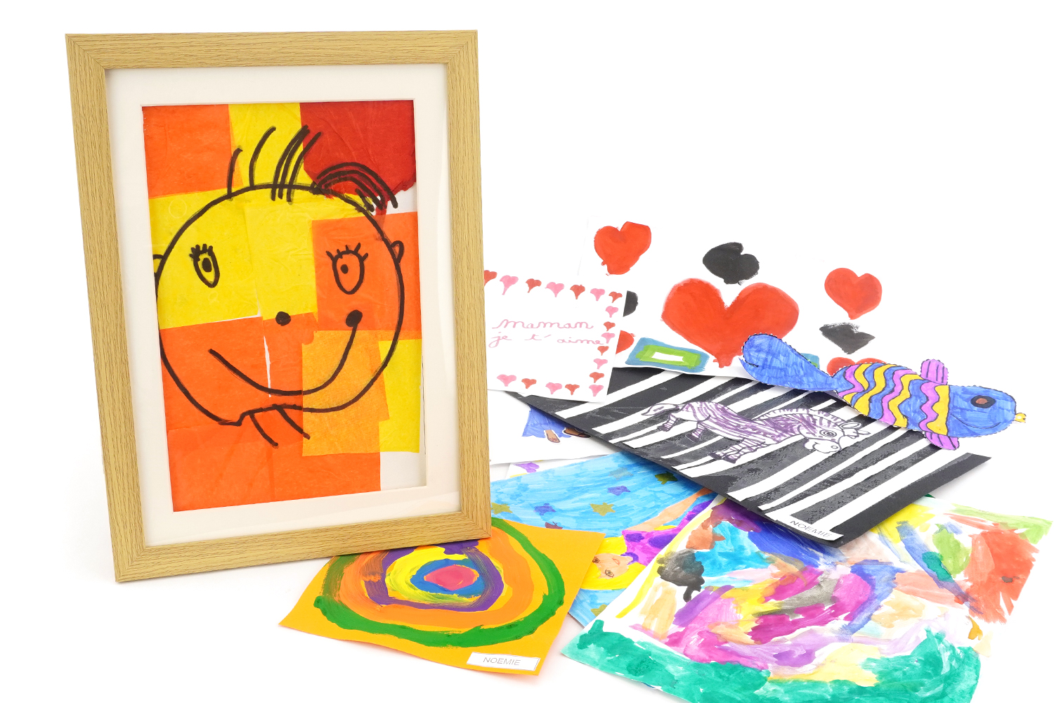 Un marco que dura: adecuado para conservar las obras a lo largo de los años, este marco acompañará las evoluciones de su hijo y mantendrá cuidadosamente cada etapa de su recorrido artístico.
