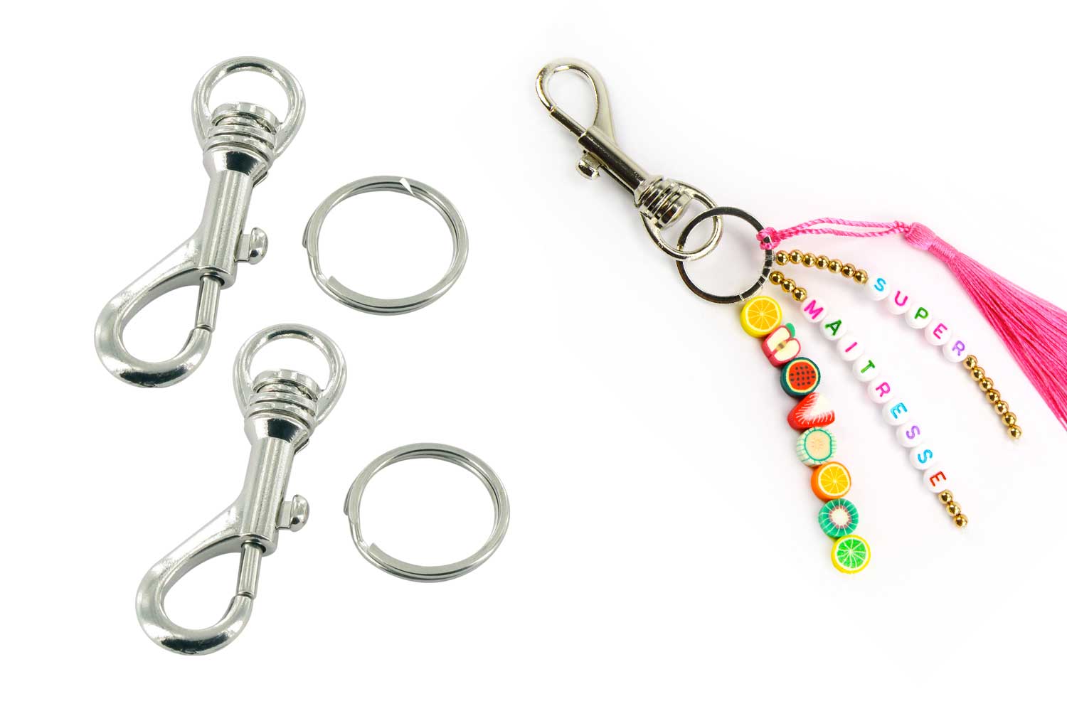 Mosquetones plateados + anillos - 2 piezas