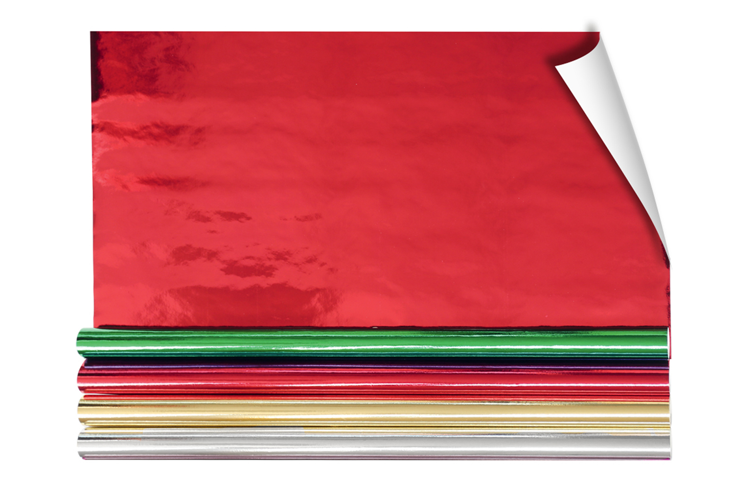 Rollo de papel metalizado adecuado particularmente para decoraciones de fiestas y la fabricación de móviles. Papel con una cara metalizada de color, y una cara reversa blanca. Densidad del papel baja y flexible, que permite una gran manejabilidad, podrá realizar todo tipo de plegado con este papel.