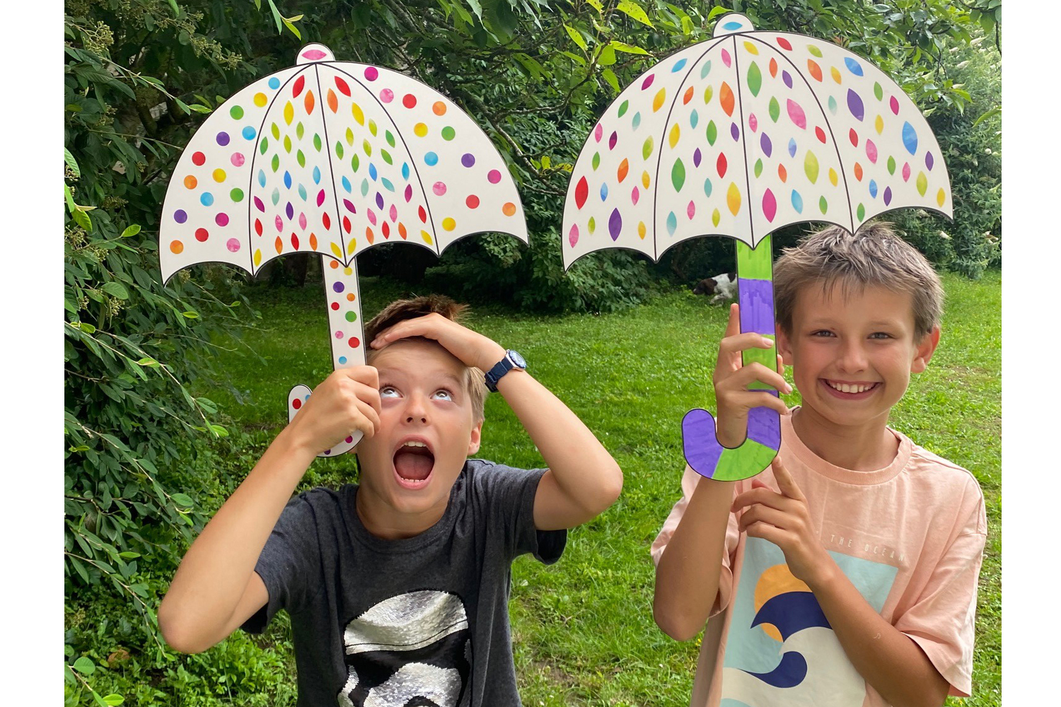 Grandes paraguas de cartón para decorar con gomets, lápices, rotuladores, pintura, tinta... ¡Serán perfectos para animar un taller creativo!