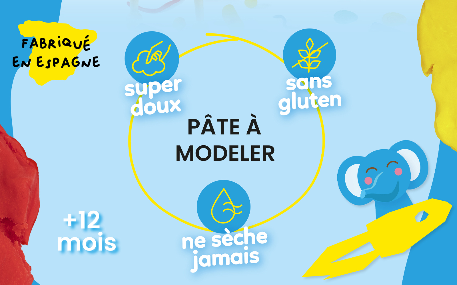 Descubre una pasta a modelar para el primer año, que no se seca, especialmente desarrollada para bebés y niños a partir de los 12 meses. La famosa plastilina de Jovi se presenta aquí en una versión aún más suave y moldeable para las pequeñas manos de los niños. Esta pasta a base de cera vegetal y sin alérgenos podrá ser utilizada a lo infinito por los niños, ¡ya que no se seca al aire! Sus propiedades permitirán a los niños realizar formas y objetos mientras trabajan su motricidad fina con el descubrimiento de texturas y colores.