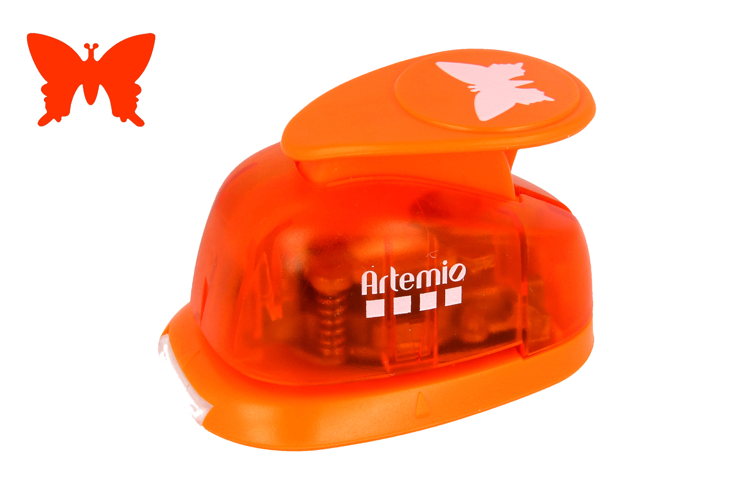 Forma mariposa tamaño mediano (aproximadamente 2.5 cm), con esta perforadora podrás cortar cualquier tipo de papel con un gramaje máximo de 200gr/m².