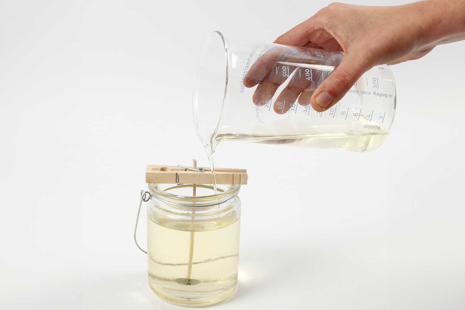 Pinza para la ropa de madera natural, una herramienta práctica para mantener la mecha recta al fabricar velas en recipientes. Al colocar la pinza de la ropa en posición horizontal en el borde del recipiente, mantiene la mecha centrada e inmóvil mientras se vierte y enfría la cera líquida, garantizando así una vela bien equilibrada y funcional.