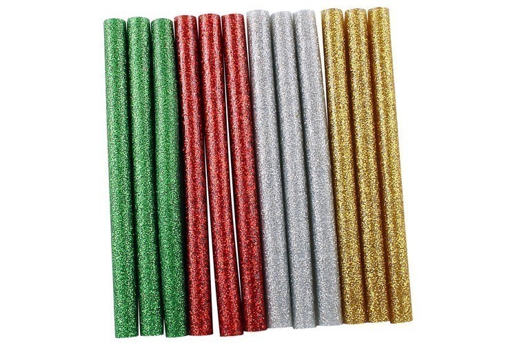 Cada pistola se entrega con 2 barras de pegamento transparente (Ø 0,7 cm — Longitud: 10 cm) y un soporte de metal para reposar la pistola después de su uso.