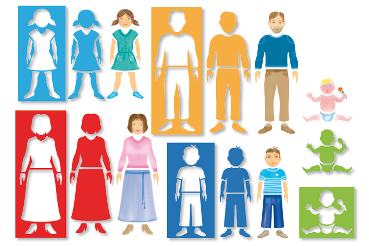 Plantillas + siluetas "Familia" - 5 plantillas