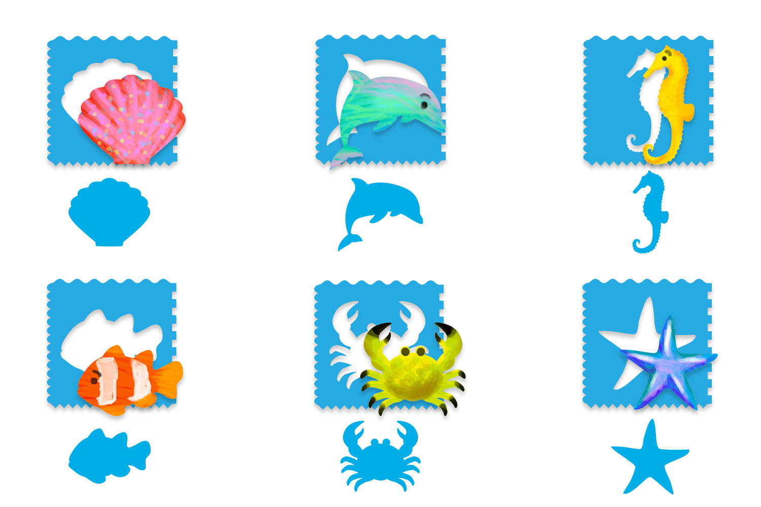 Plantillas + siluetas Océano - 6 piezas