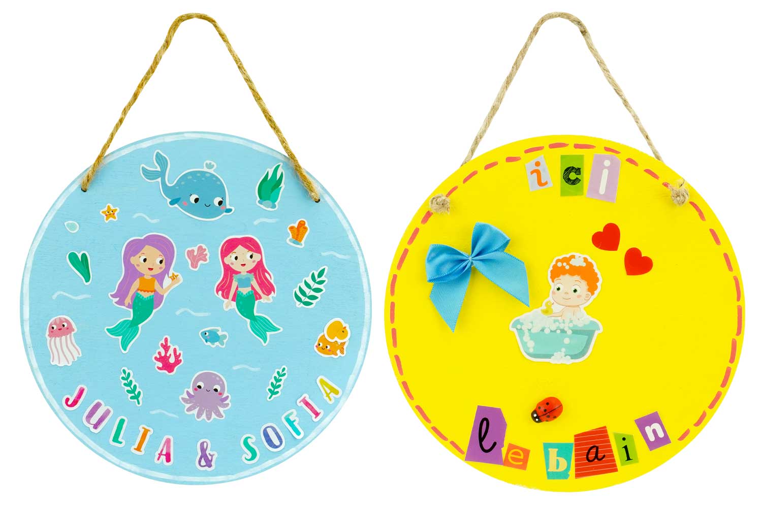 Transformez l'entrée d'une chambre ou un mur vide avec cette plaque de porte ronde en bois naturel. Livrée prête à l'emploi avec son cordon de suspension rustique, elle offre une surface lisse et claire qui mettra en valeur toutes vos idées créatives.Que ce soit pour indiquer le prénom d'un enfant sur la porte de sa chambre ou pour créer une décoration murale saisonnière, ce support simple est un grand classique des loisirs créatifs, apprécié pour sa polyvalence et sa facilité d'utilisation.