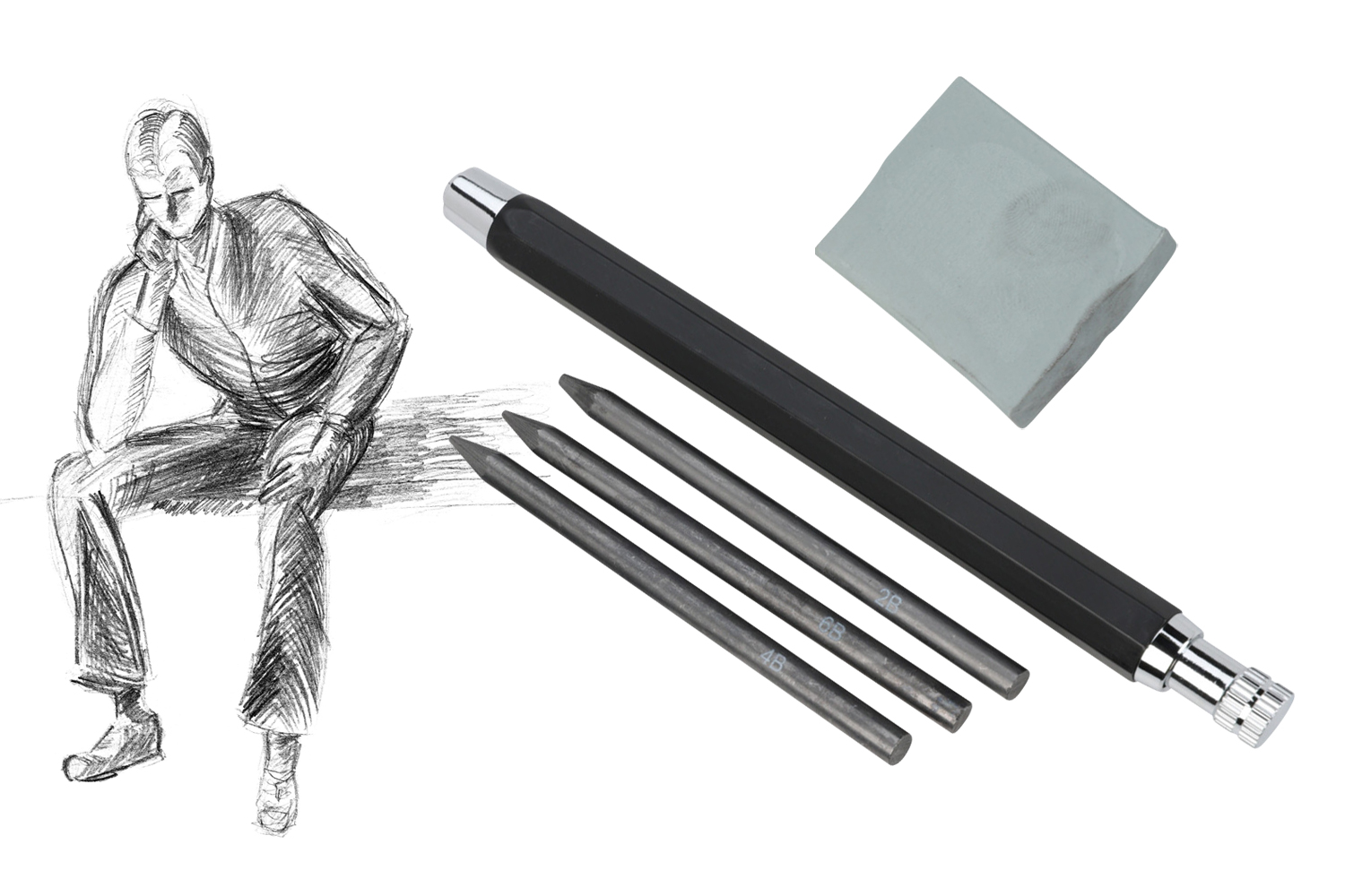 - 3 minas de grafito incluidas: 2B para trazos suaves y sombras ligeras, 4B para contrastes equilibrados, 6B para negros intensos y profundos.