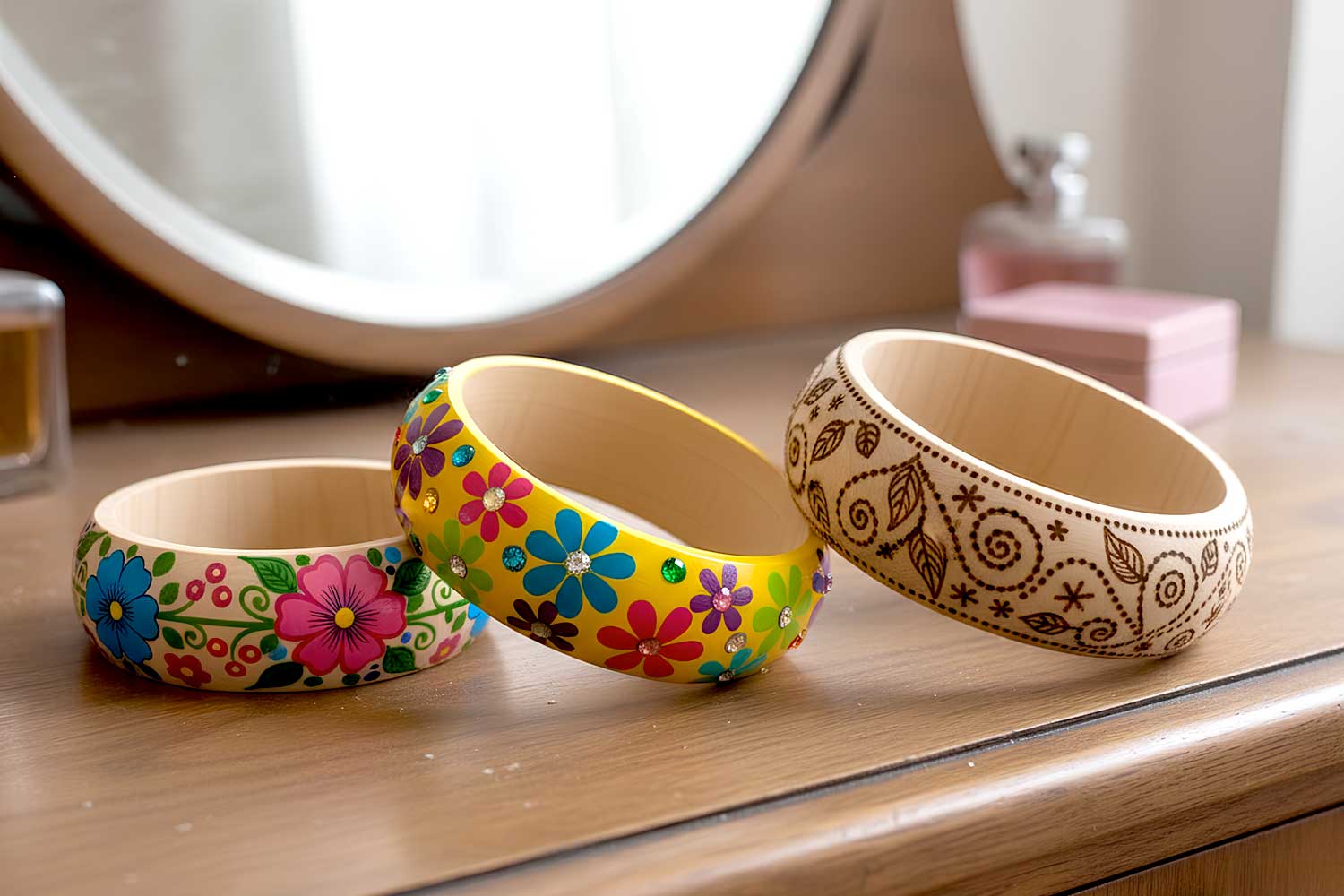 Pulsera de madera natural, de 7 cm de diámetro. Puede ser decorada de mil formas: pintura, barniz, collages, grabado, dibujos con marcadores, pegado de strass..