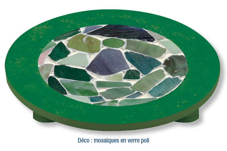 - Plato de mosaicos redondo : Espesor : 1 cm - Ø Exterior : 26 cm - Ø Interior : 18 cm