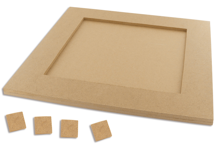 - Plato de mosaicos cuadrado : Espesor : 1 cm - Ø Exterior : 26 x 26 cm - Ø Interior : 18 x 18 cm