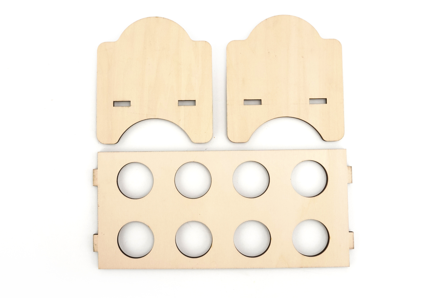 Exhiba sus œufs de Pâques de manera original gracias a este soporte de madera para ensamblar. Compuesto de 3 piezas simples para montar y consolidar con un poco de pegamento, este mostrador robusto y personalizable es ideal para Pâques. Agregue un toque creativo pintándolo o decorándolo según sus deseos para ocasiones festivas.