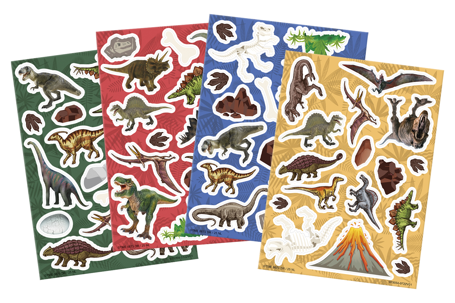 Los pequeños fanáticos de los dinosaurios rugirán de felicidad con estos 50 stickers vitrostatiques a la imagen de sus criaturas preferidas: T-rex, triceratops, pterosaurios, volcanes, huevos fosilizados… ¡todo está para recrear un verdadero mundo prehistórico en las ventanas o en cualquier superficie lisa !