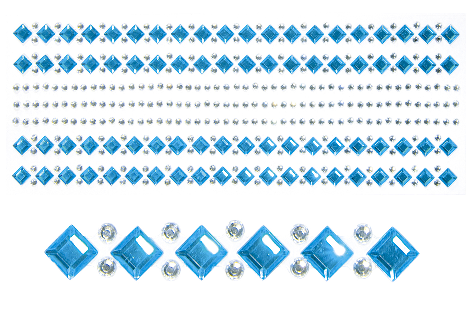 Strass adhesivos azul y plata - 7 bandas